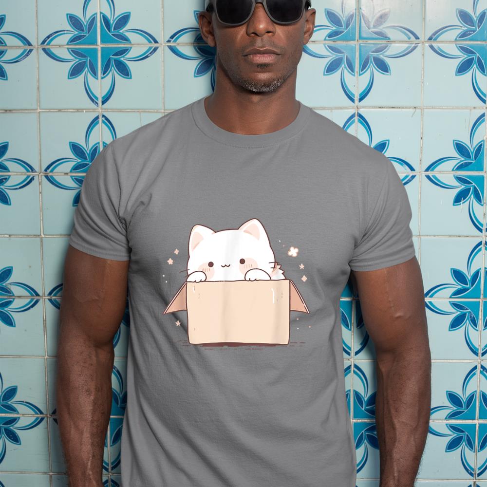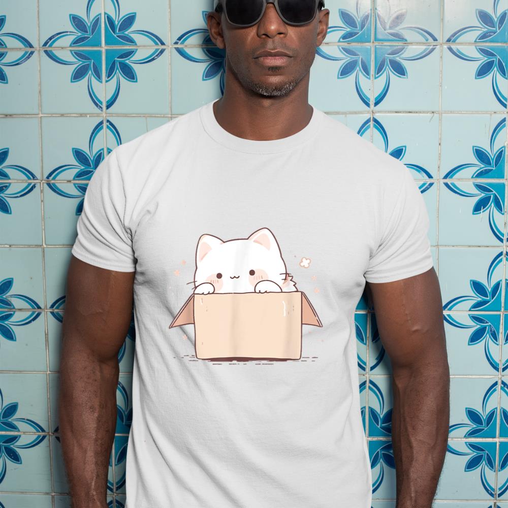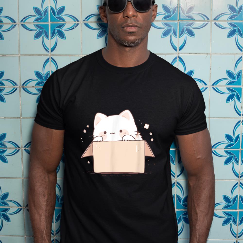 Cute White Cat in a Box Japanese Kawaii Cartoon Graphic T-Shirt