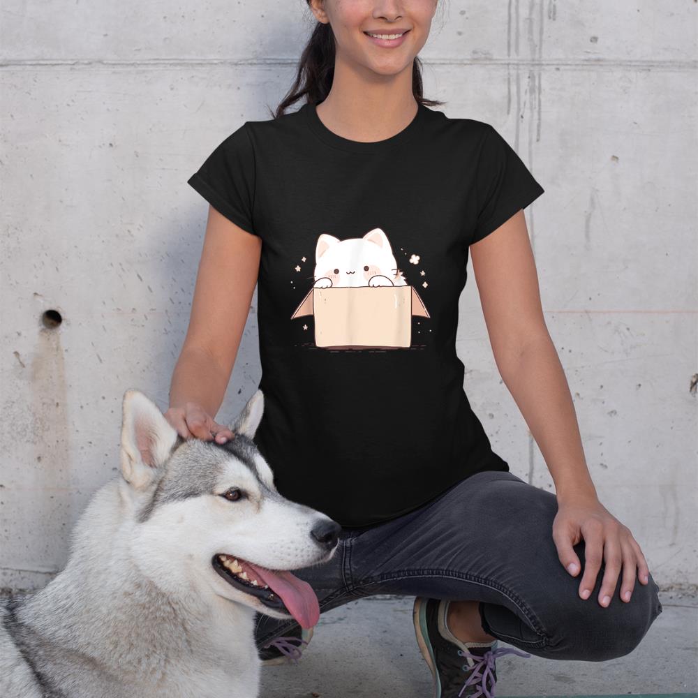 Be the first to review “Cute White Cat in a Box Japanese Kawaii Cartoon Graphic T-Shirt”
