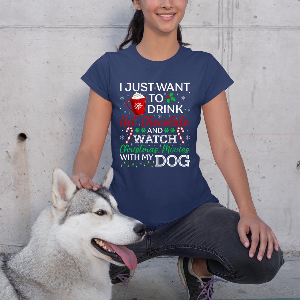 Drink Hot Chocolate And Watch Xmas Movies With My Dog T-Shirt