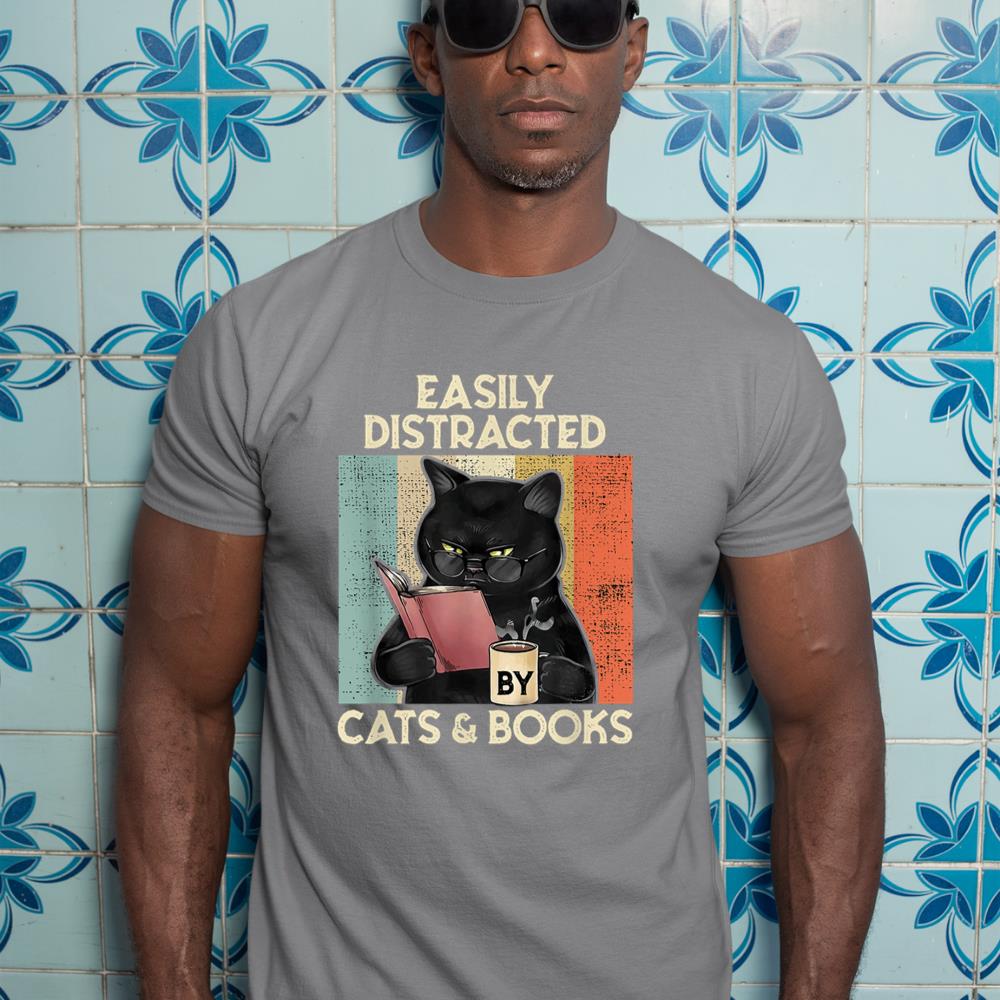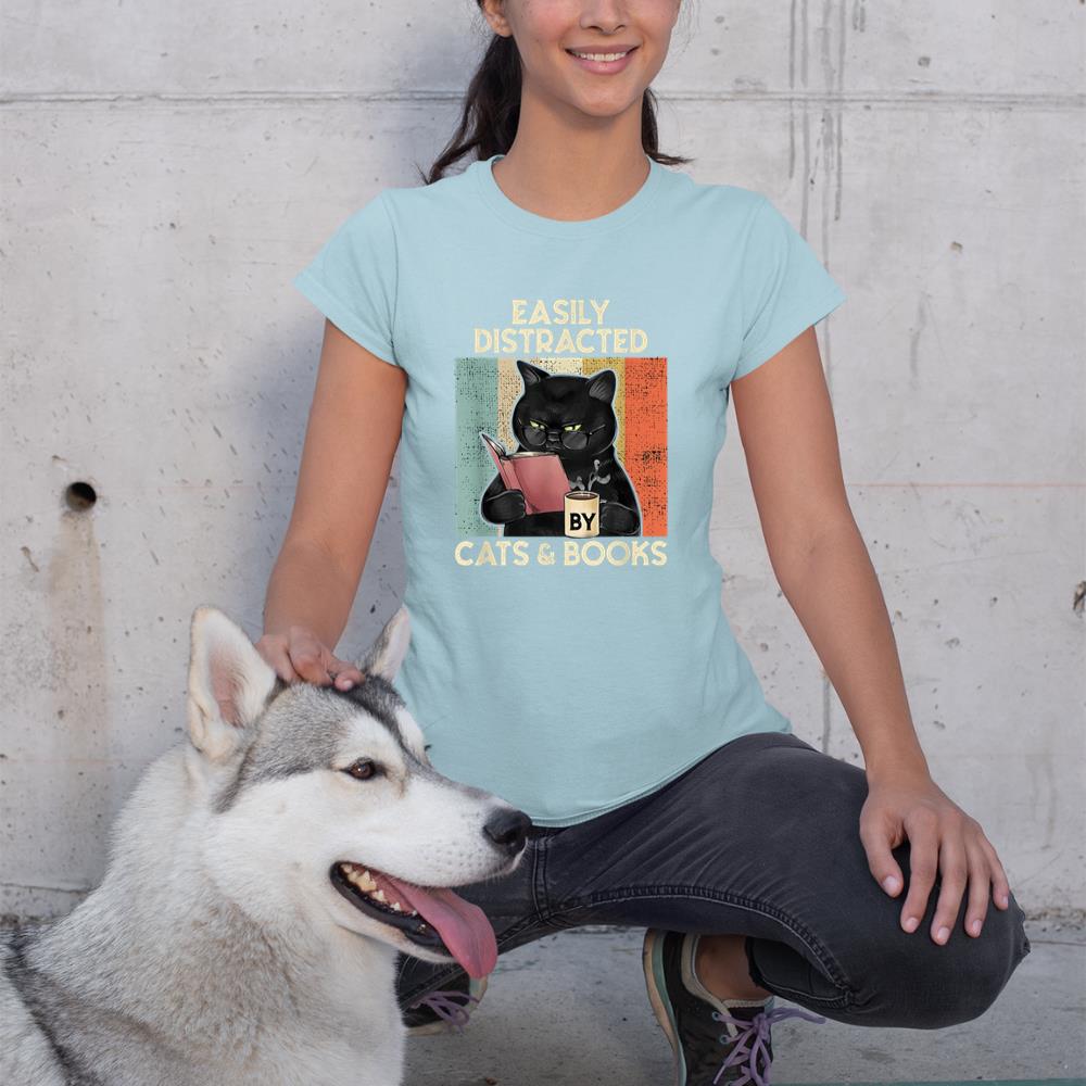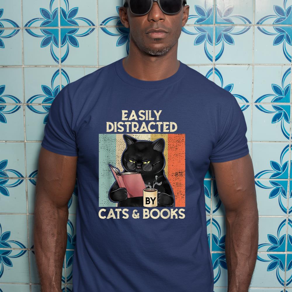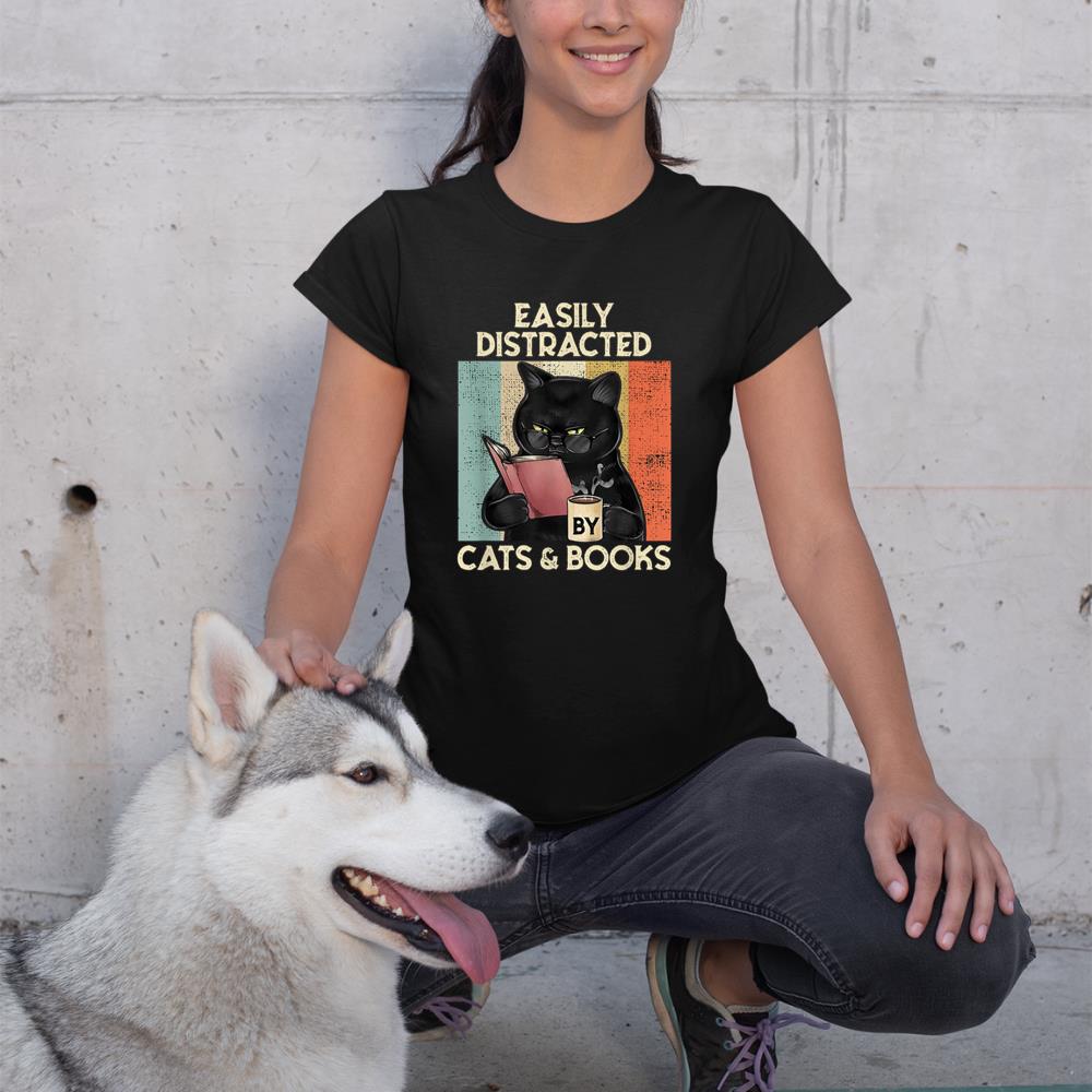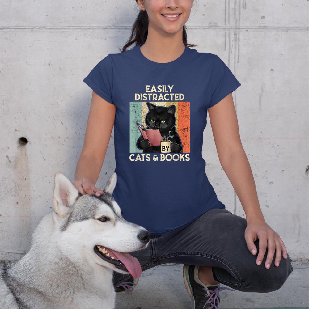Be the first to review “Easily Distracted by Cats And Books for Cat Lovers T-Shirt”