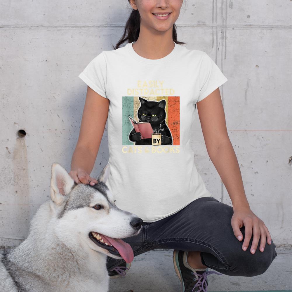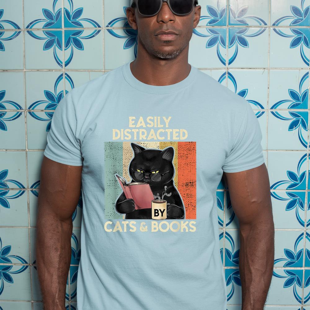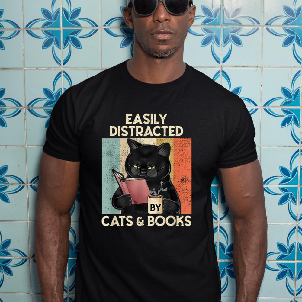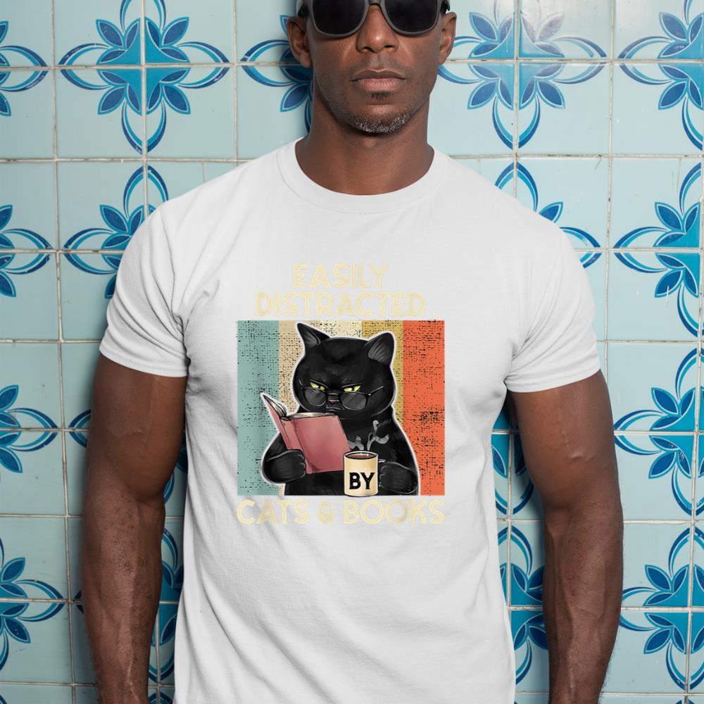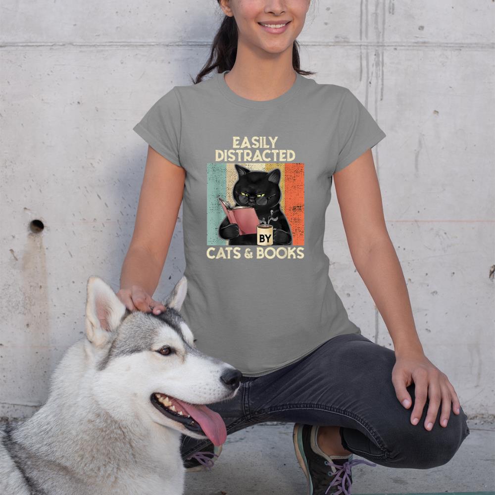Be the first to review “Easily Distracted by Cats And Books for Cat Lovers T-Shirt”