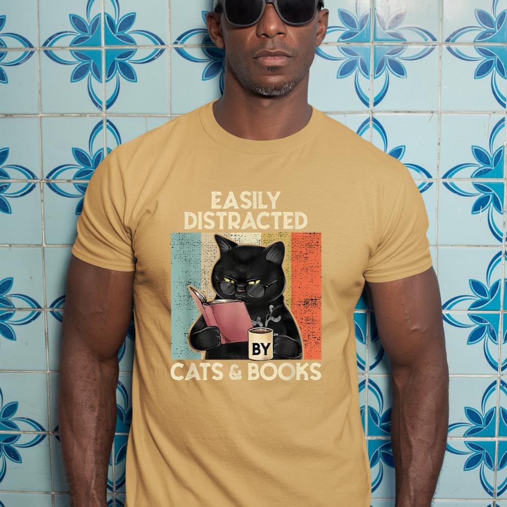 Easily Distracted by Cats And Books for Cat Lovers T-Shirt