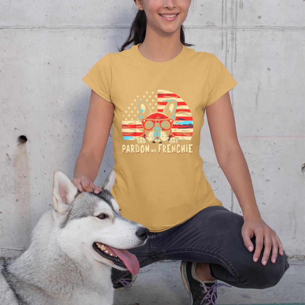 French Bulldog Pardon My Frenchie America Retro Sunset Dog T-Shirt