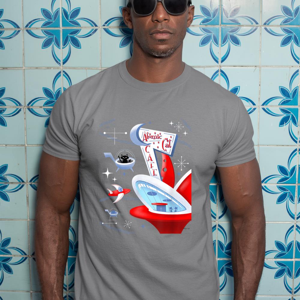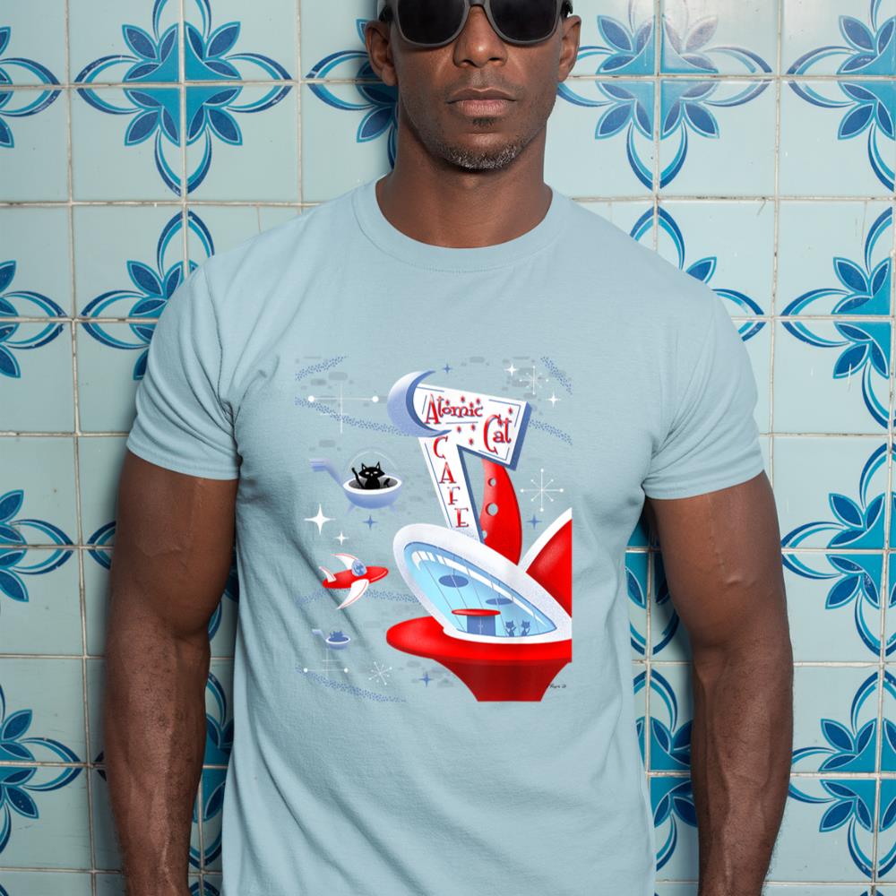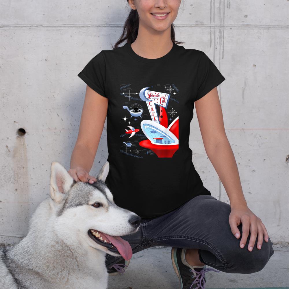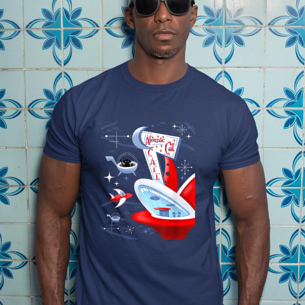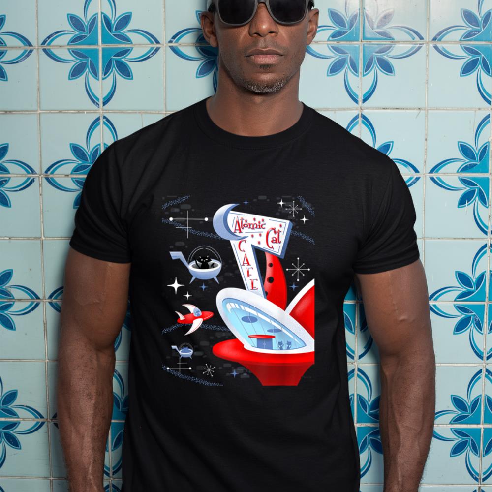 Be the first to review “Funny Atomic Cat Cafe Retro Futuristic Spaceport Mid Century T-Shirt”