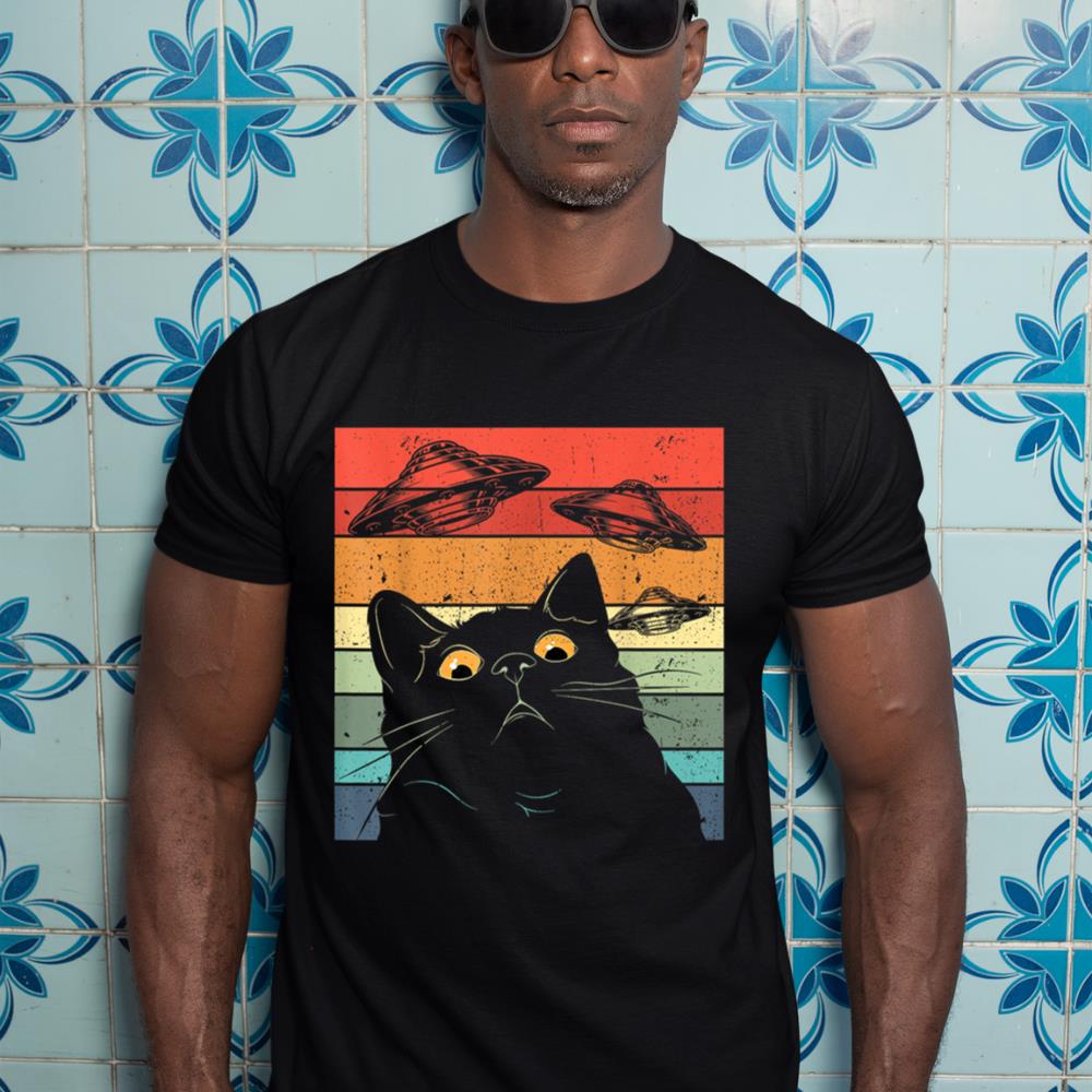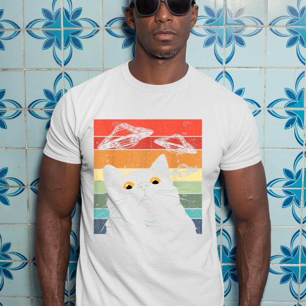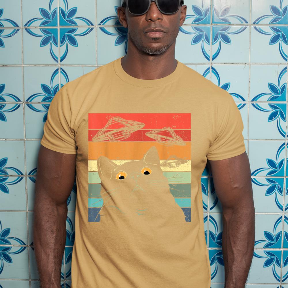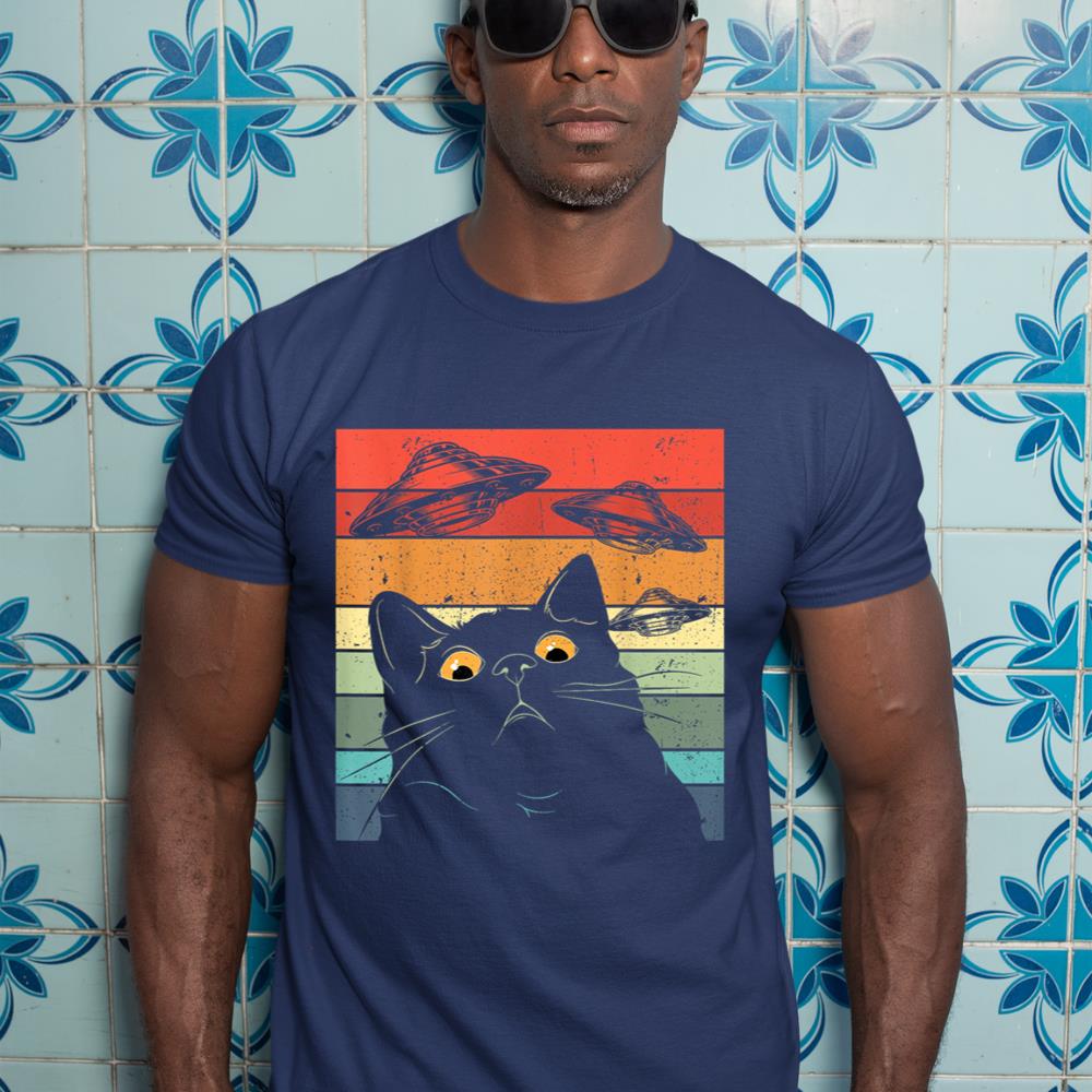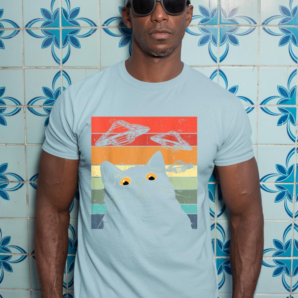 Funny Cat Tee, Galaxy Cat Shirt Spaceship Alien Cat UFO T-Shirt
