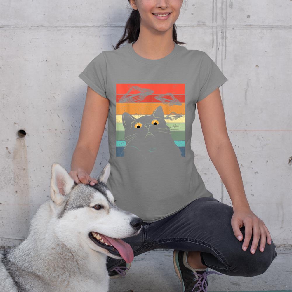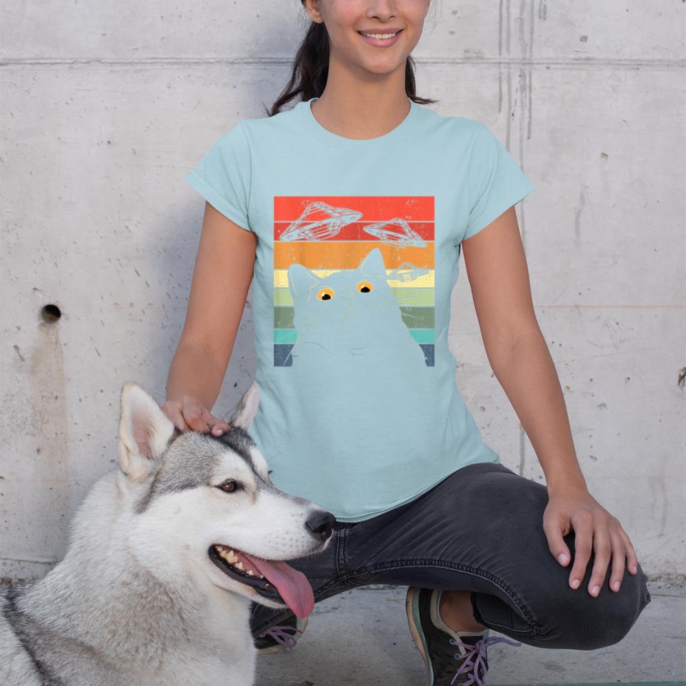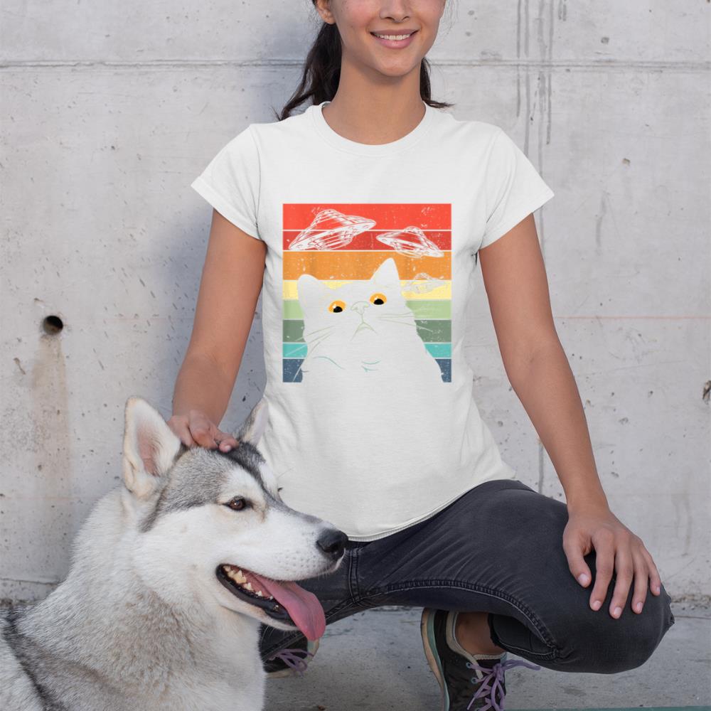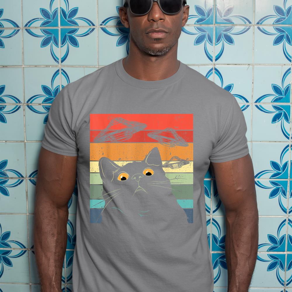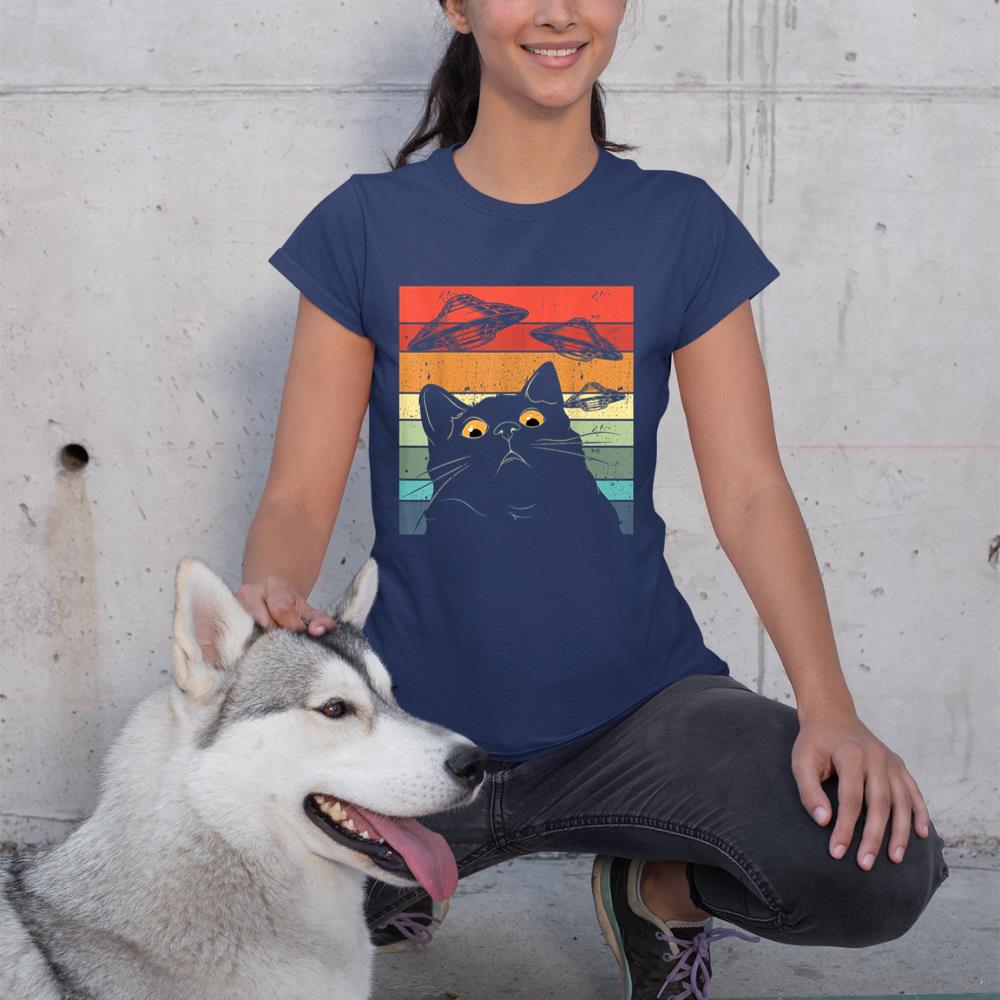 Funny Cat Tee, Galaxy Cat Shirt Spaceship Alien Cat UFO T-Shirt