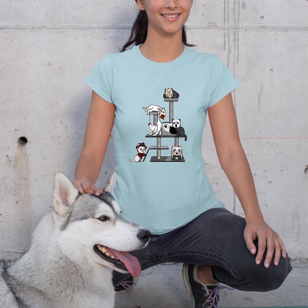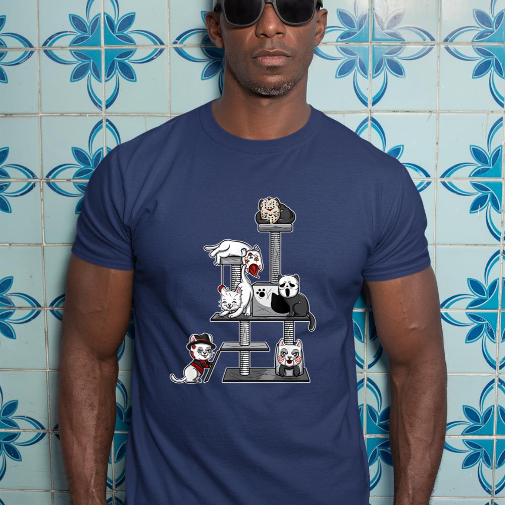 Be the first to review “Funny Horror Movie Cats Playing On Cat Tree T-Shirt”