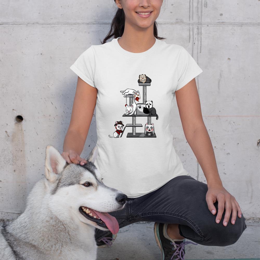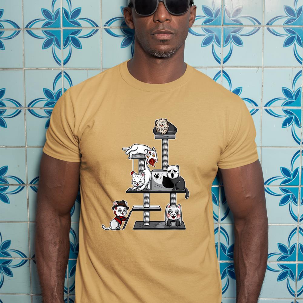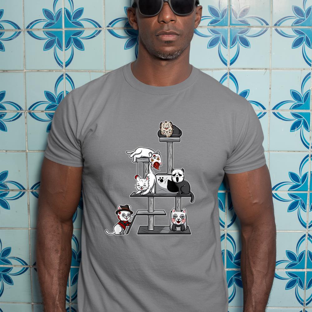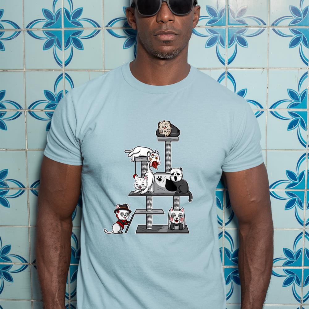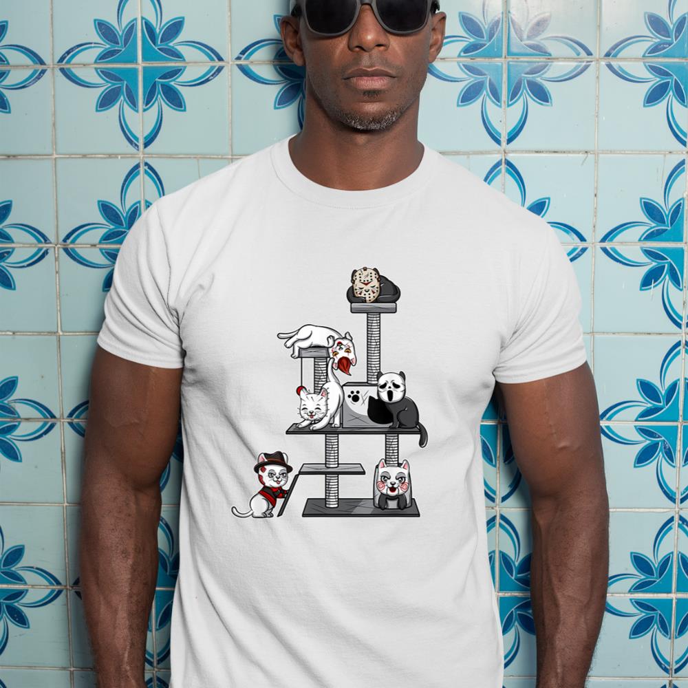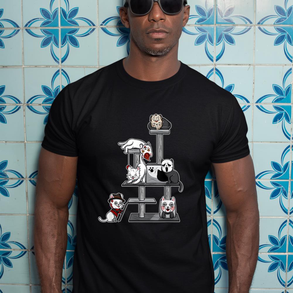 Funny Horror Movie Cats Playing On Cat Tree T-Shirt