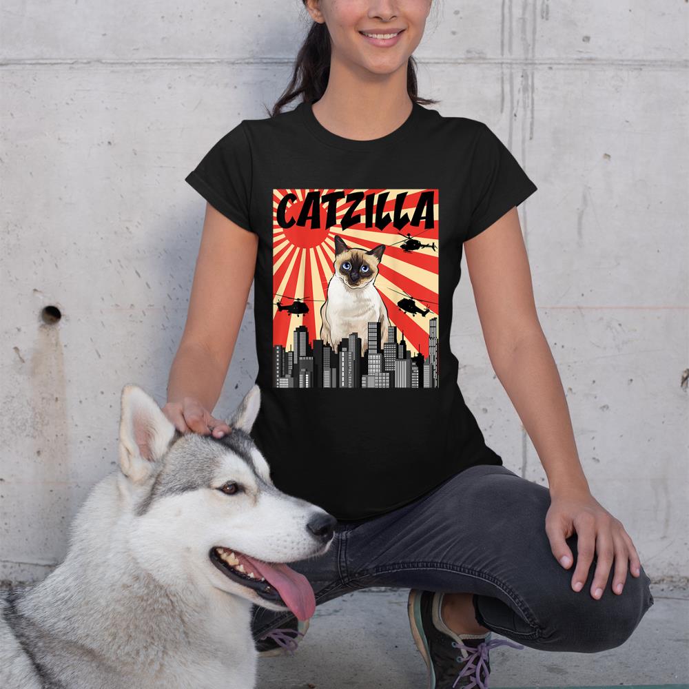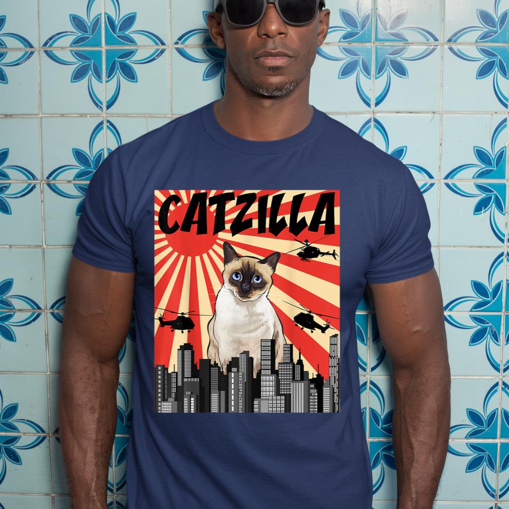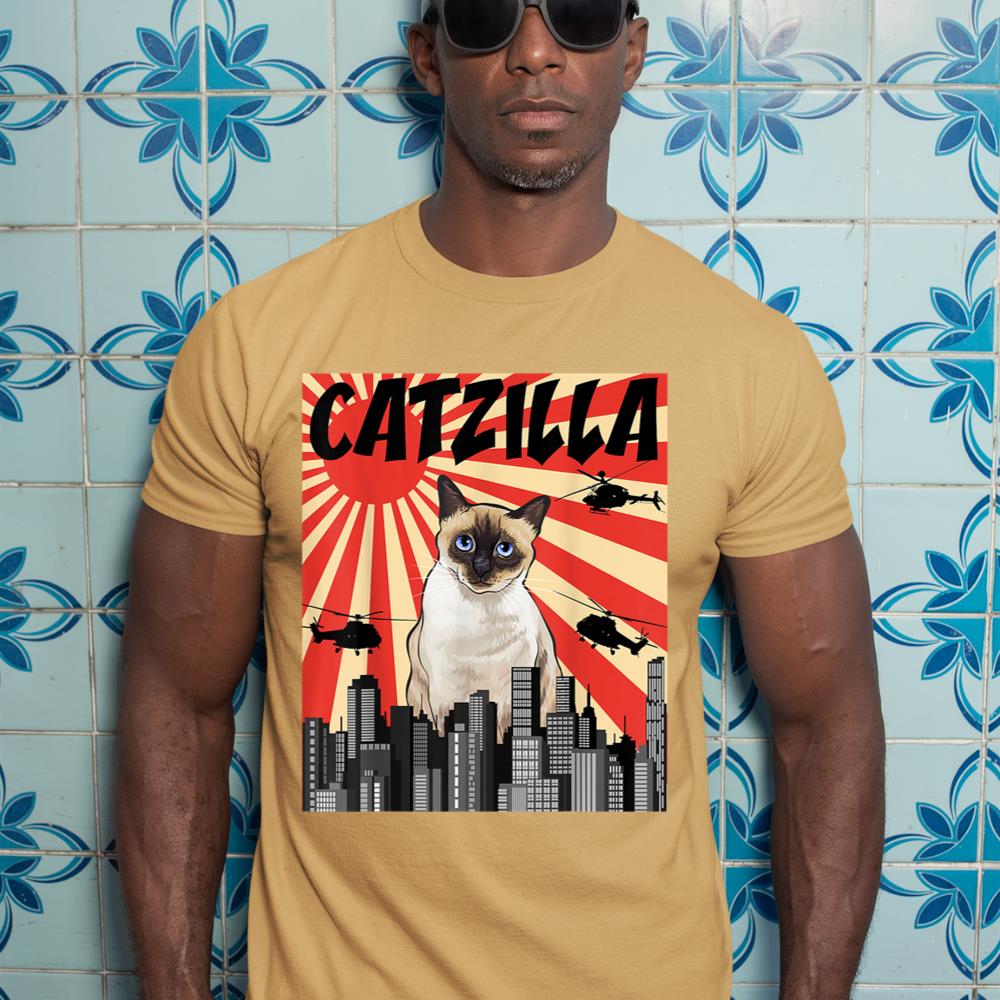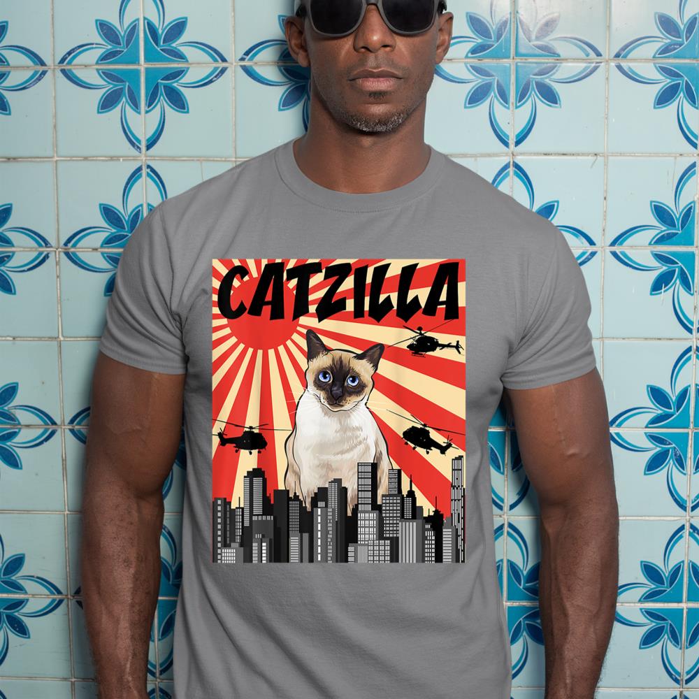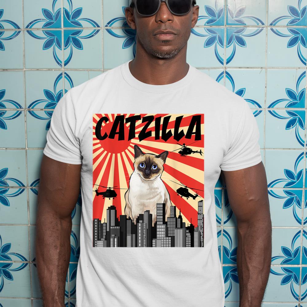 Funny Retro Japanese Catzilla Siamese Cat T-Shirt
