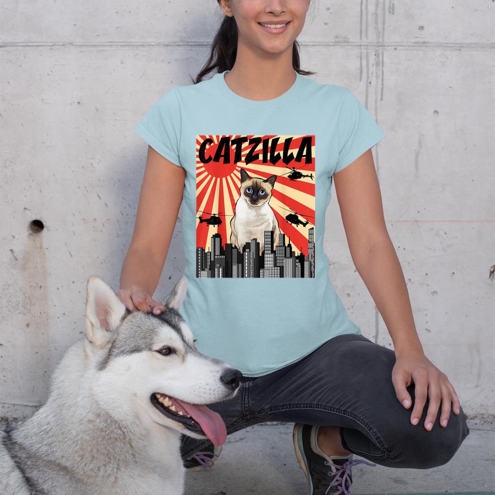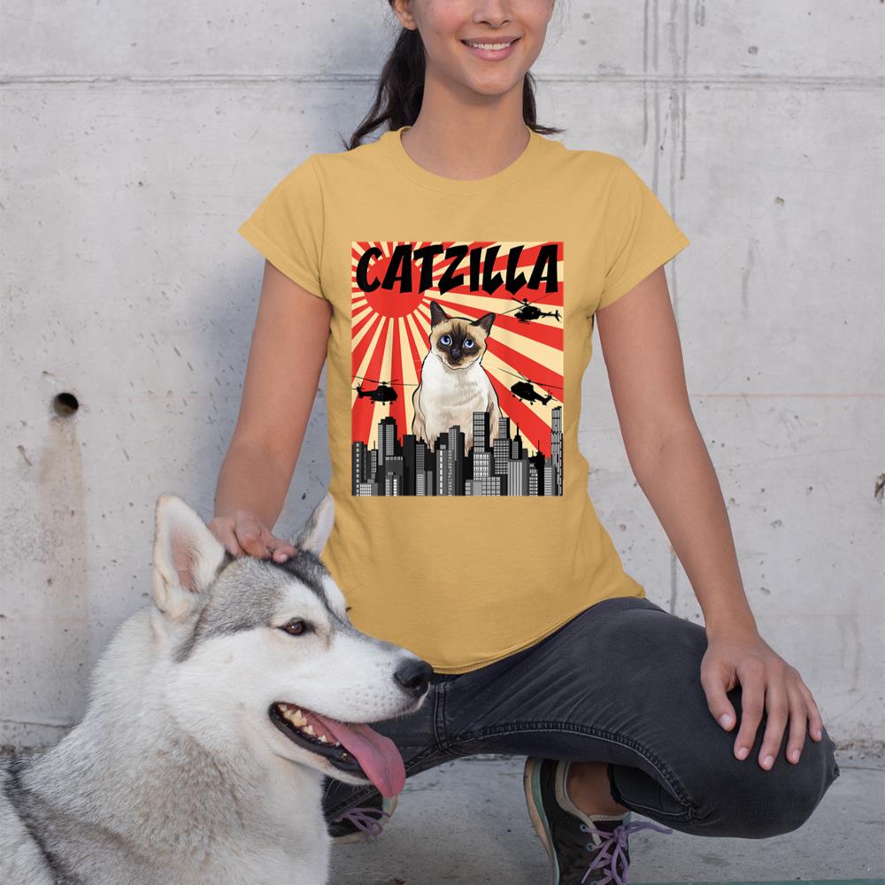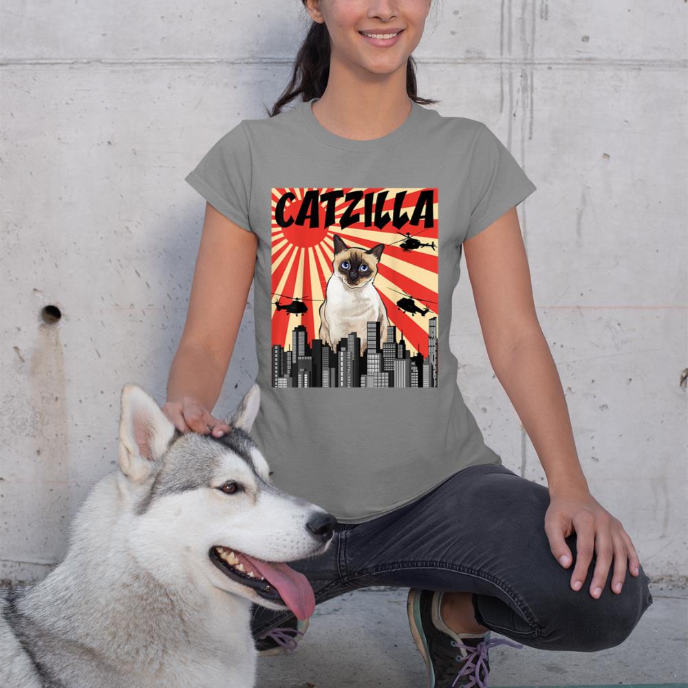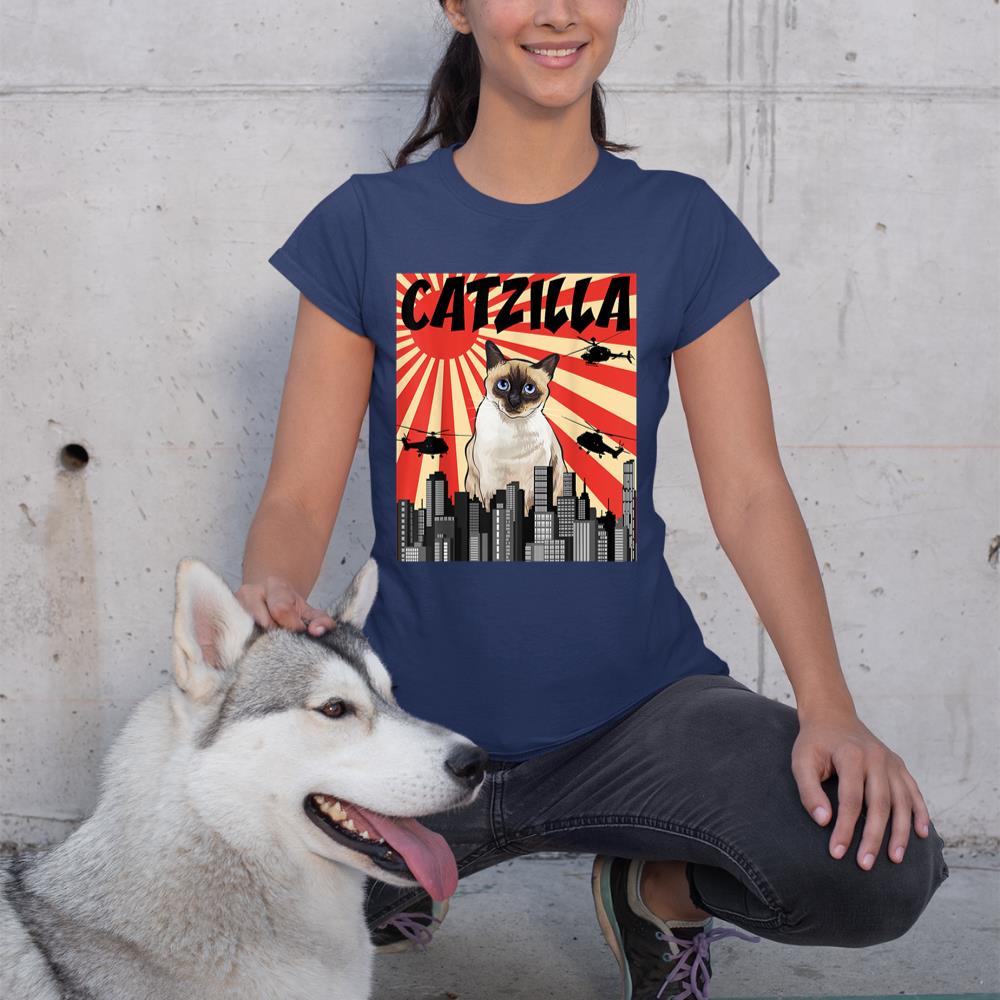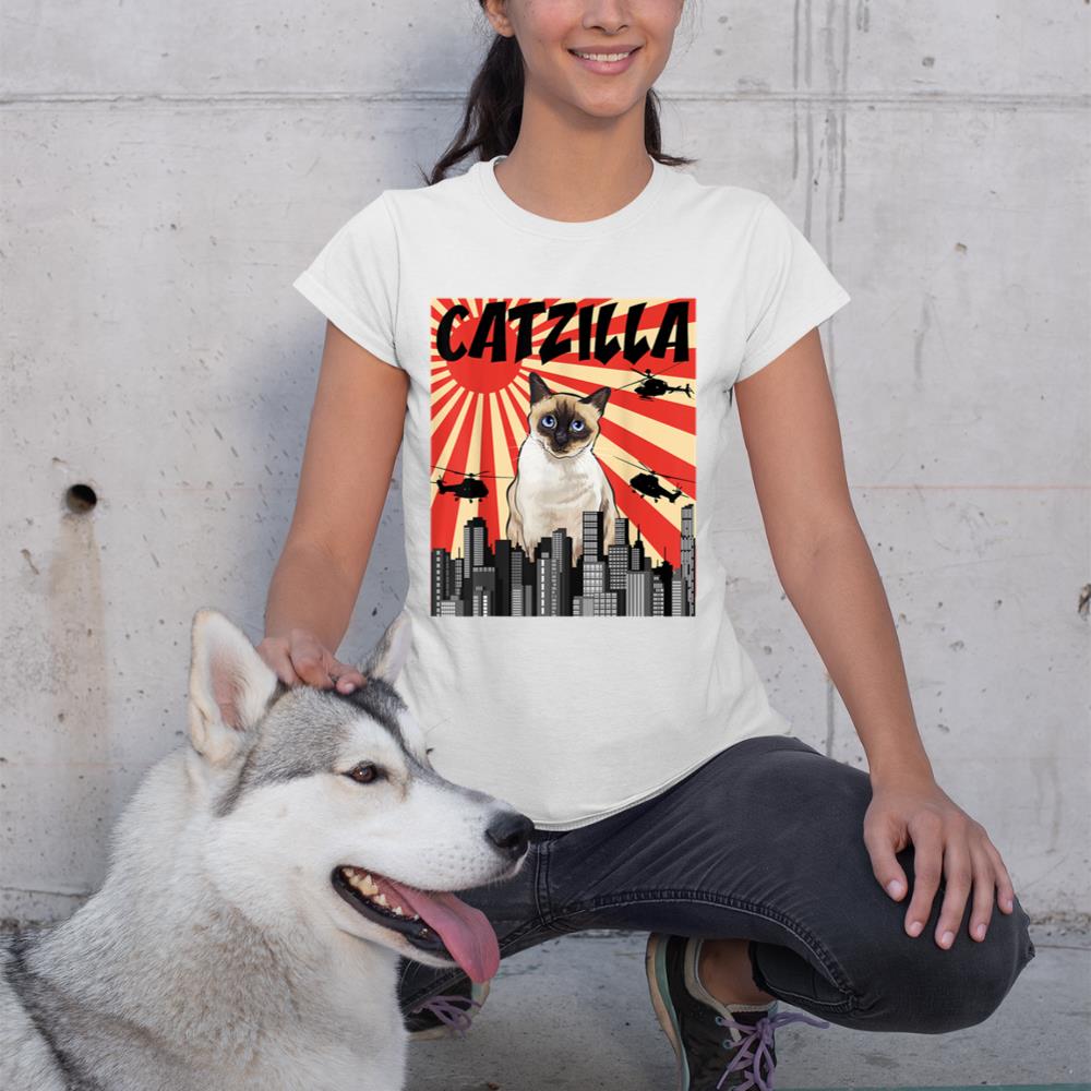 Funny Retro Japanese Catzilla Siamese Cat T-Shirt