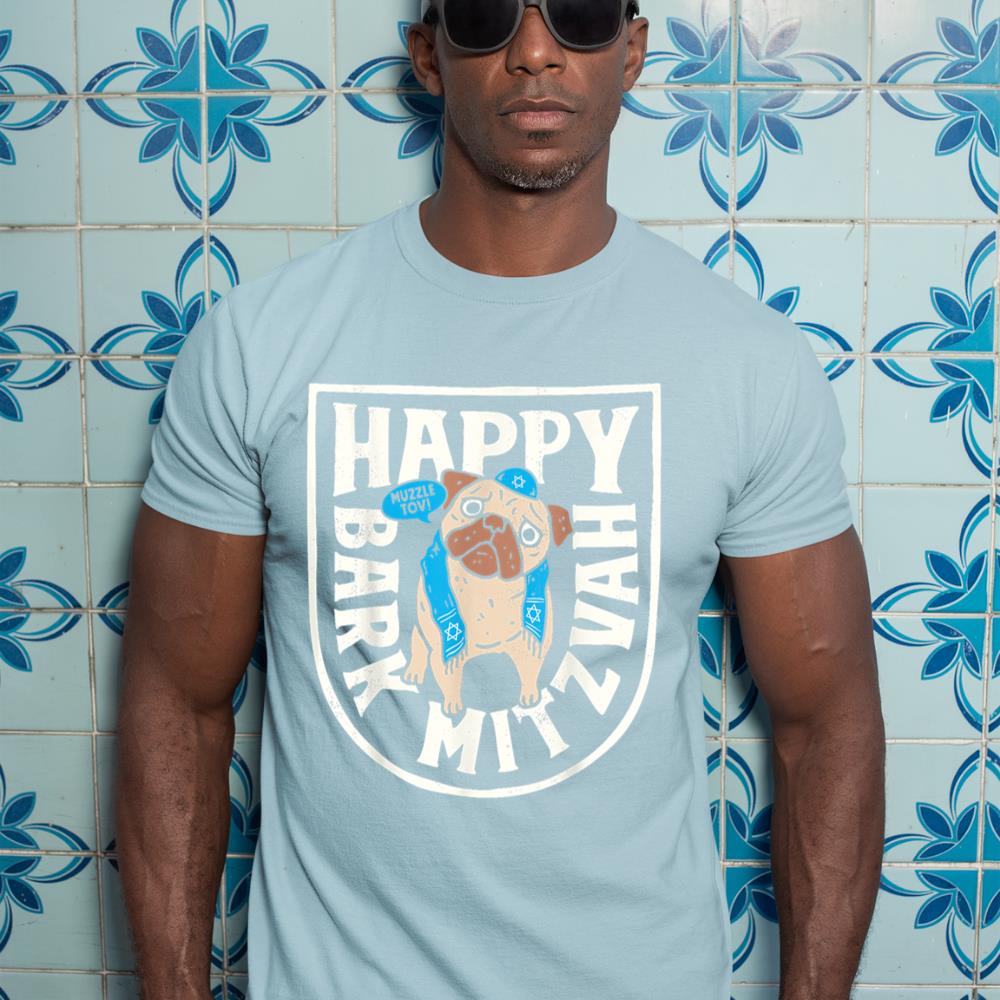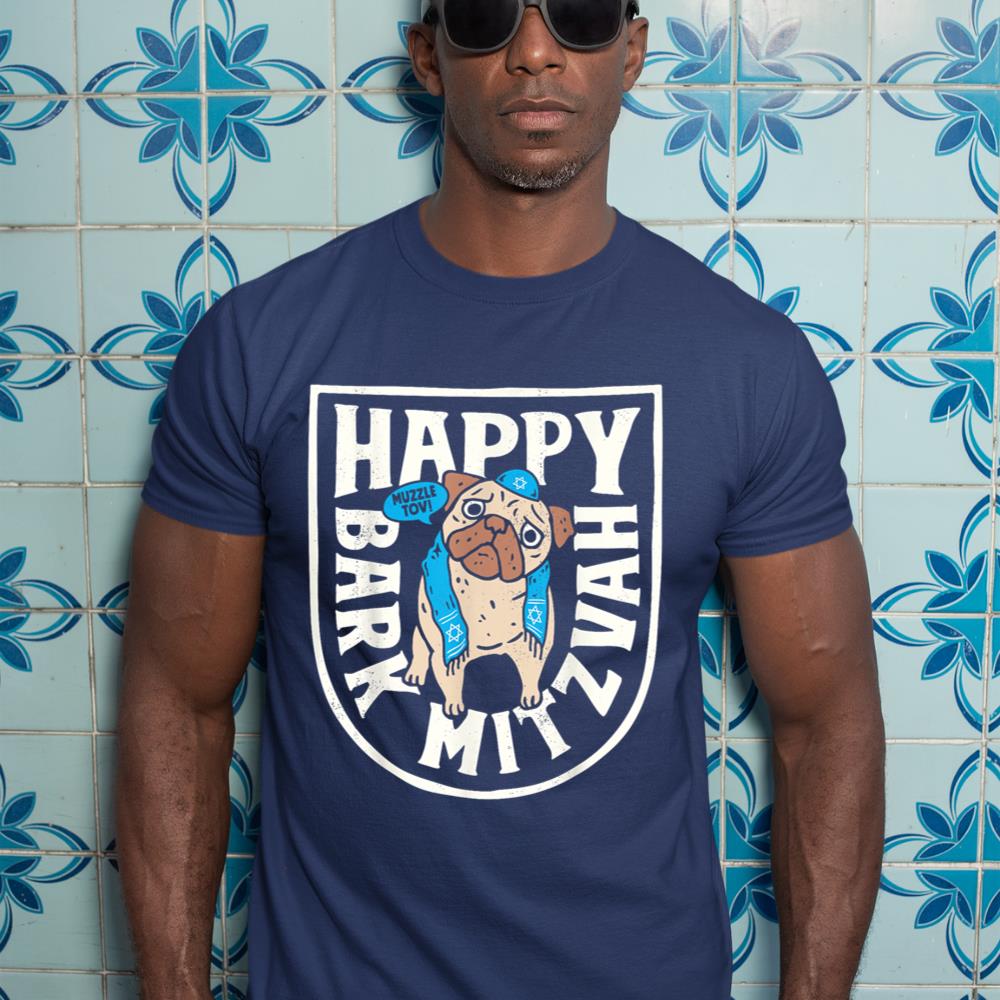 Hanukkah Pug Happy Bark Mitzvah Funny Jewish Chanukah Dog T-Shirt