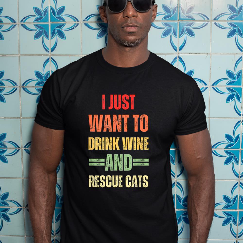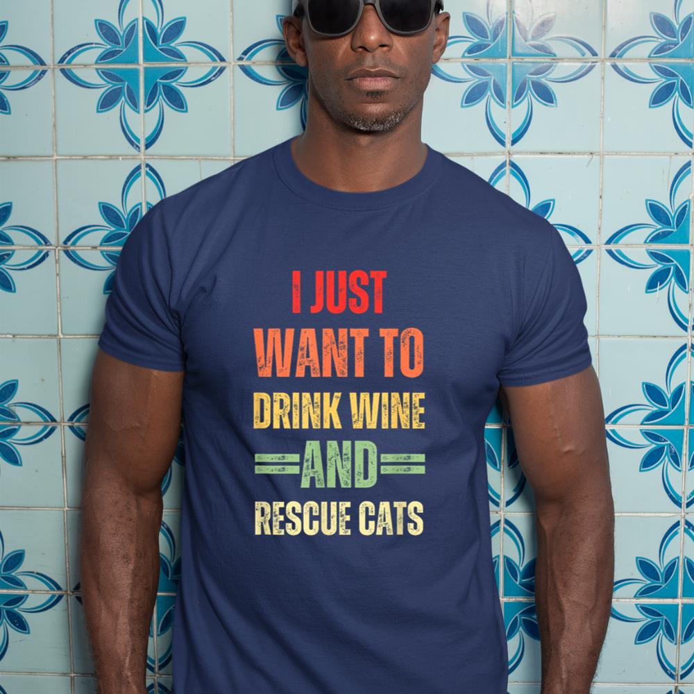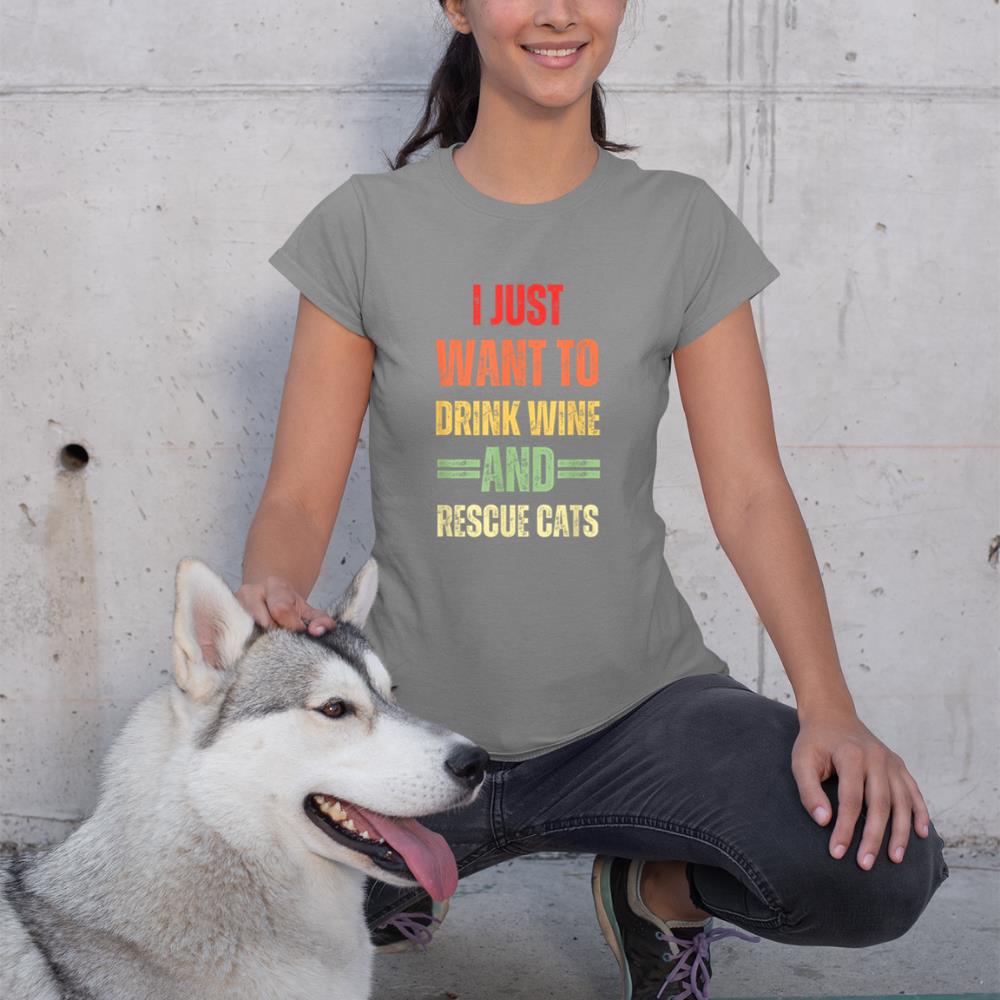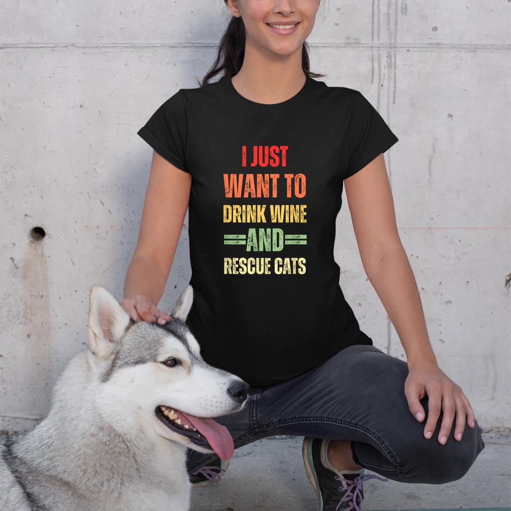 I Just Want To Drink Wine And Rescue Cats Funny Cat Lover T-Shirt