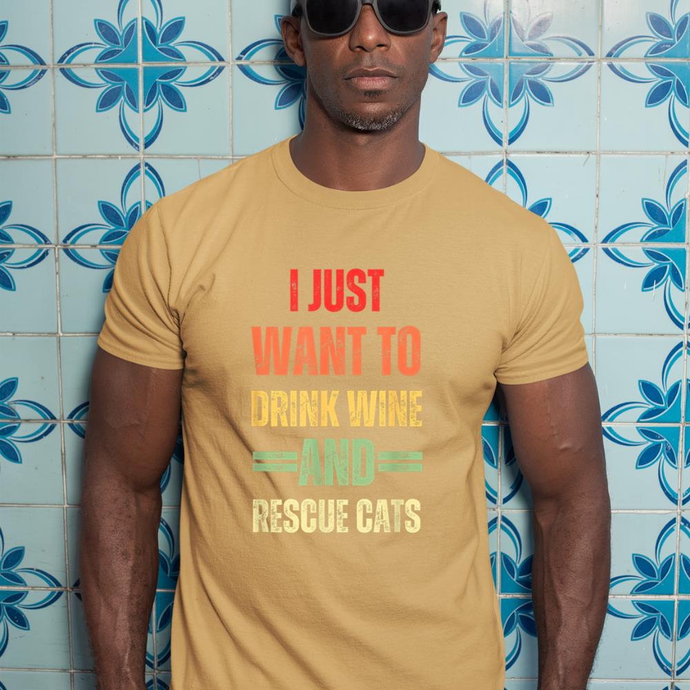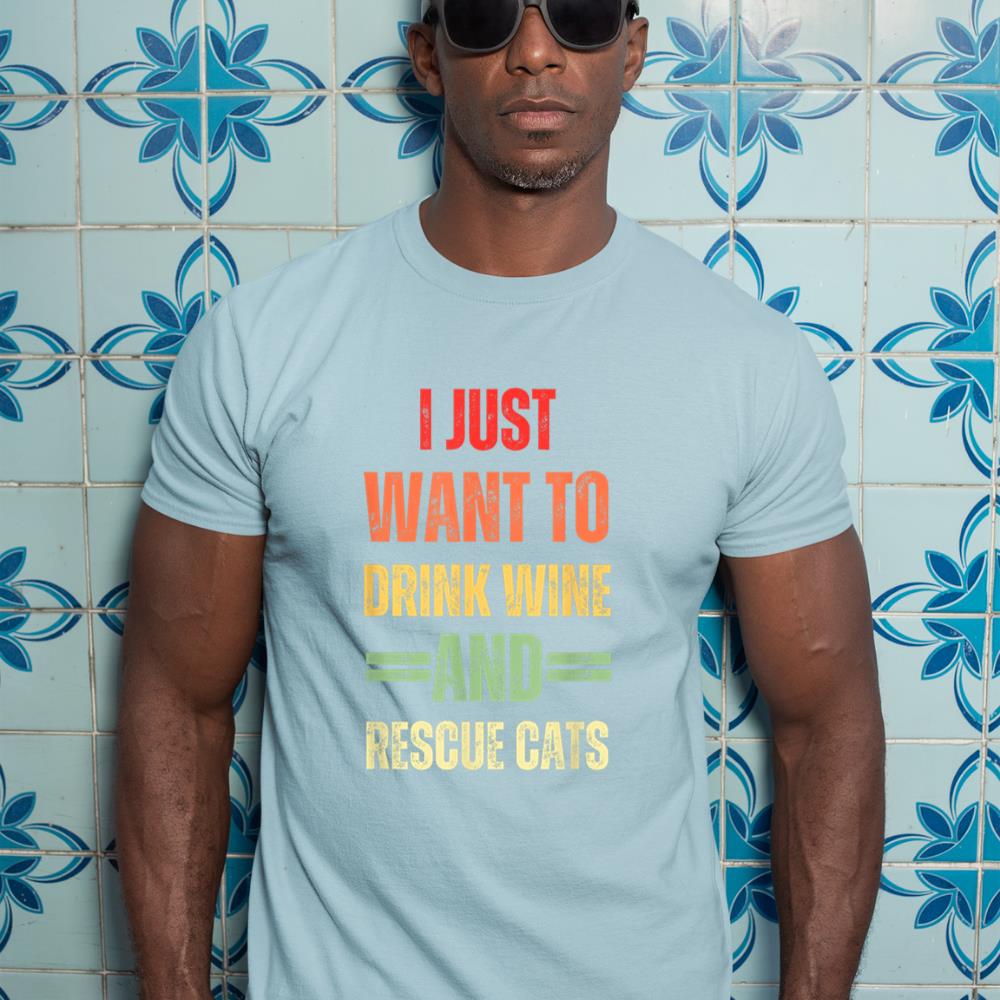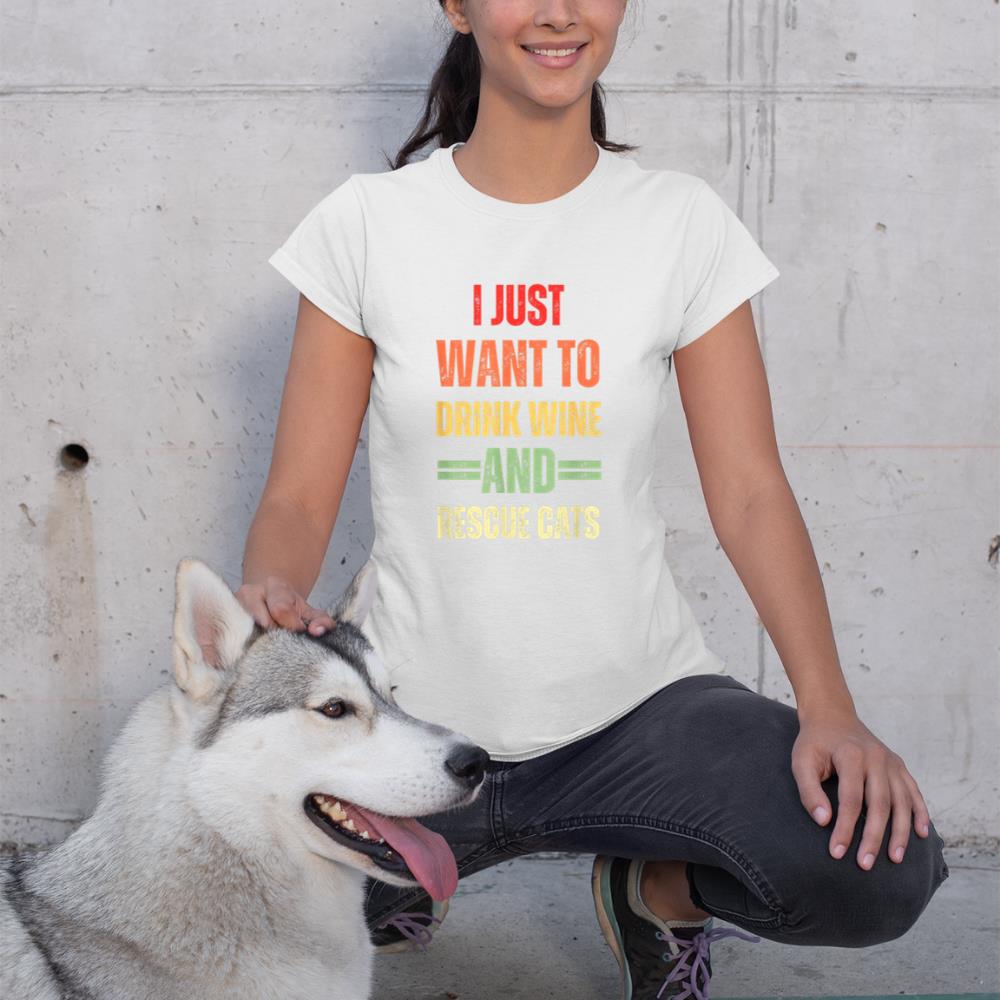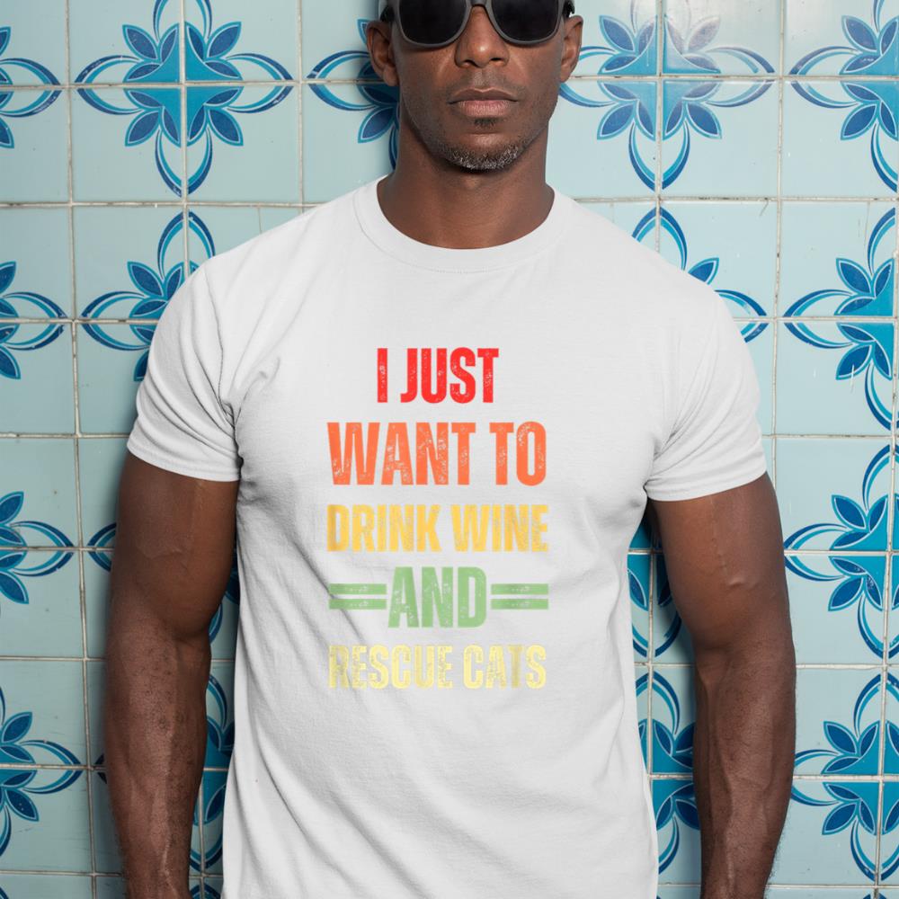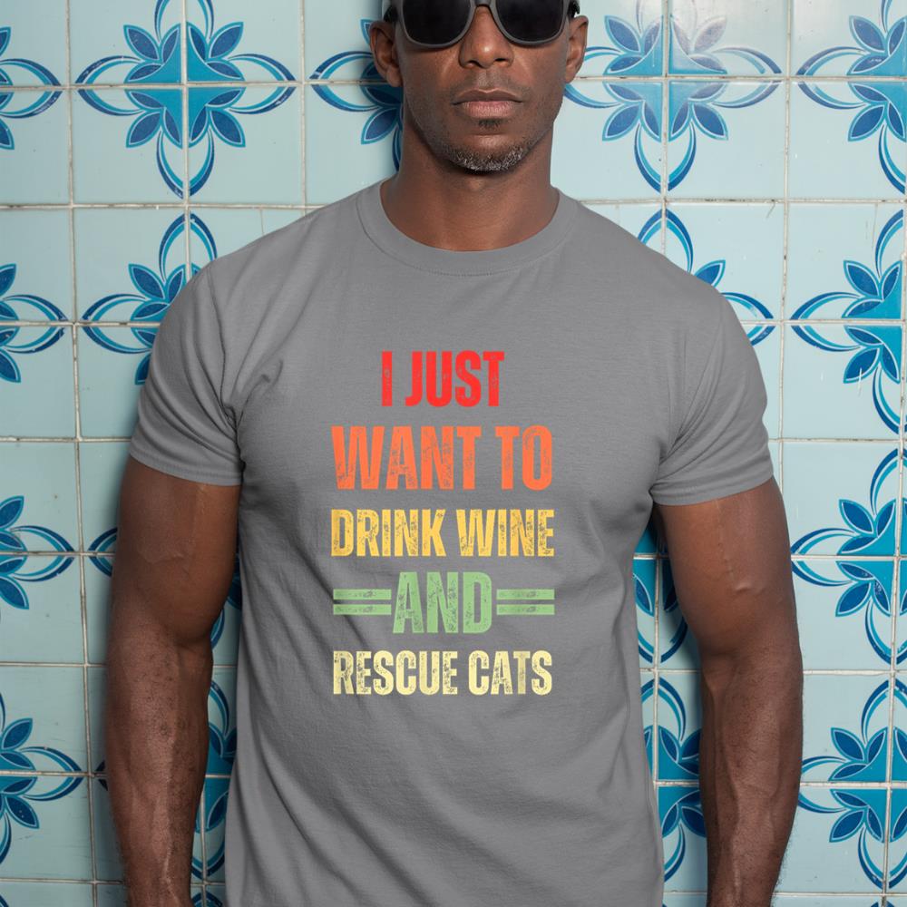 I Just Want To Drink Wine And Rescue Cats Funny Cat Lover T-Shirt