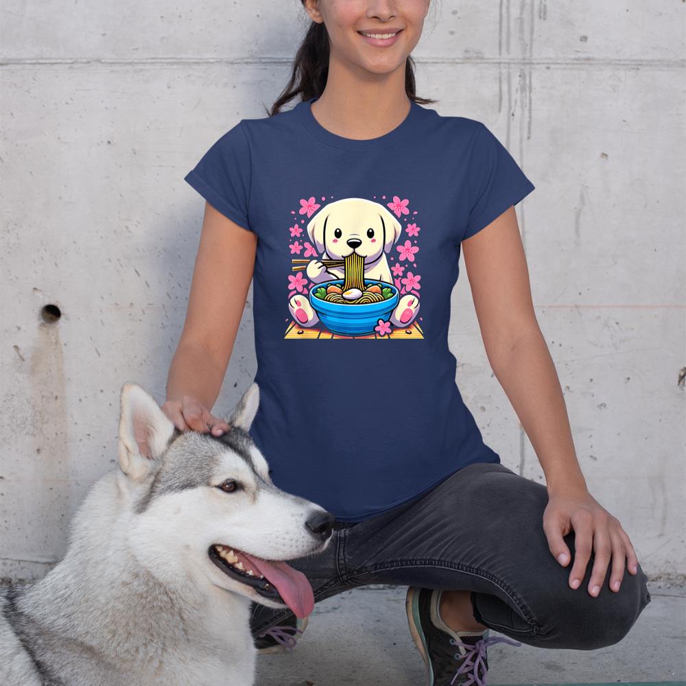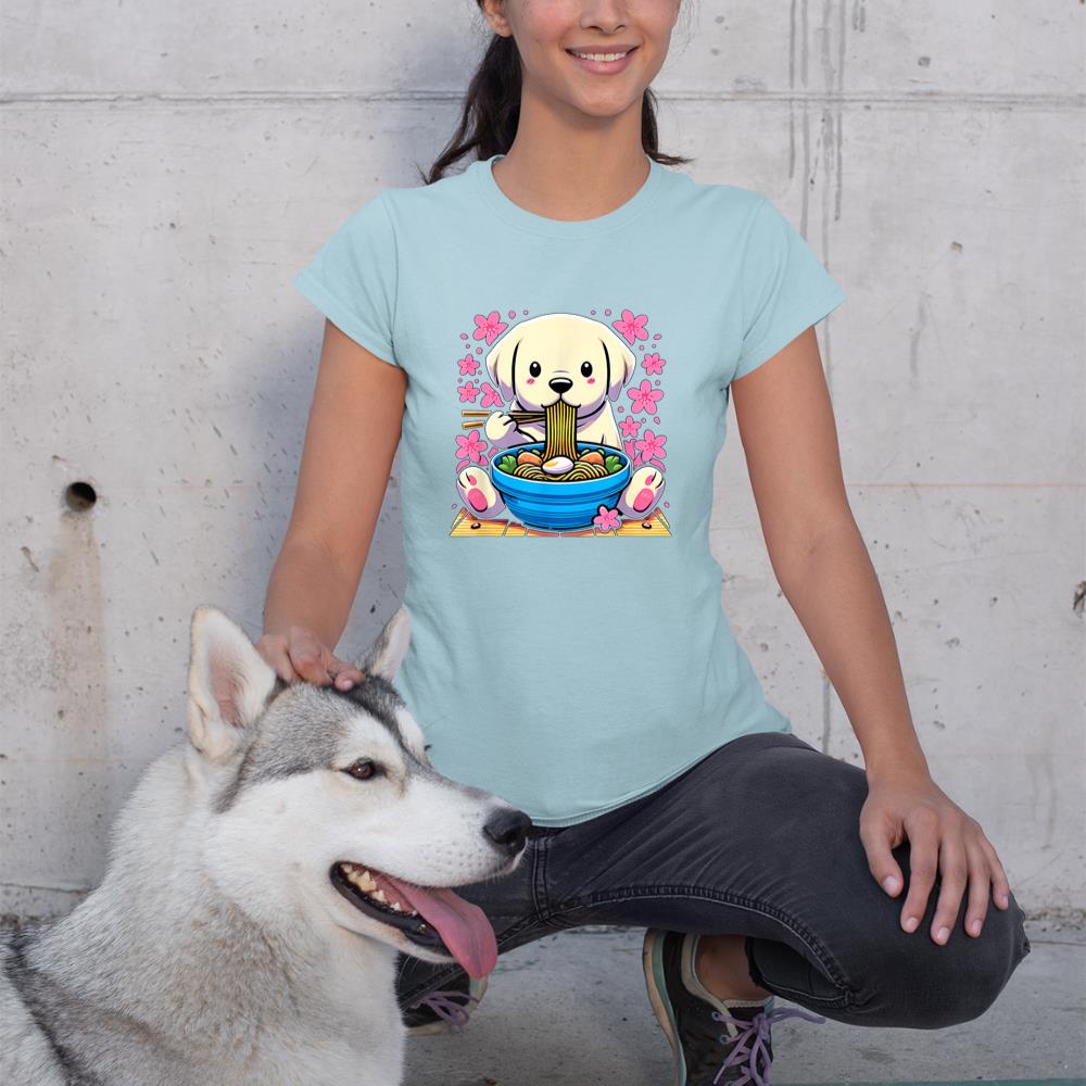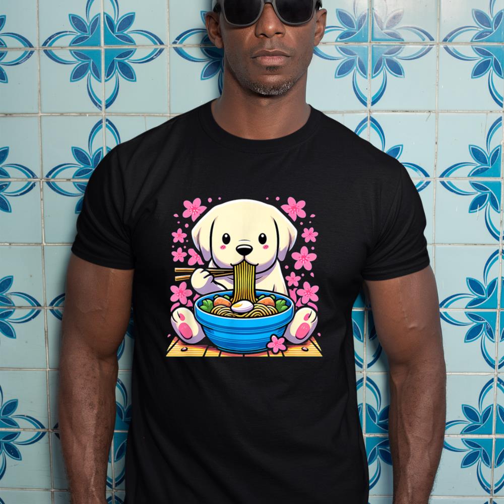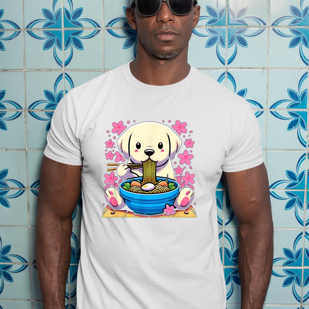Kawaii Labrador Retriever dog Eating Ramen T-Shirt