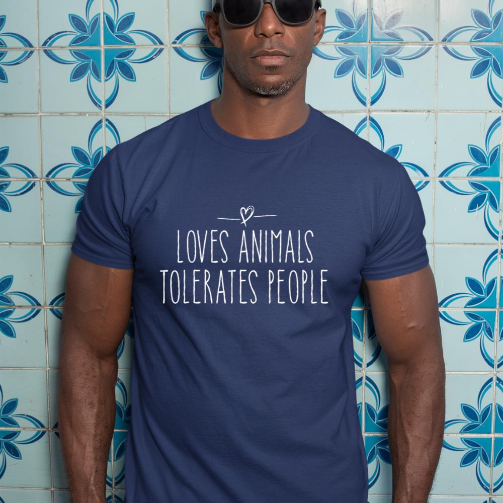 Be the first to review “loves animals tolerates people quote Cat Lover & Dog Love T-Shirt”