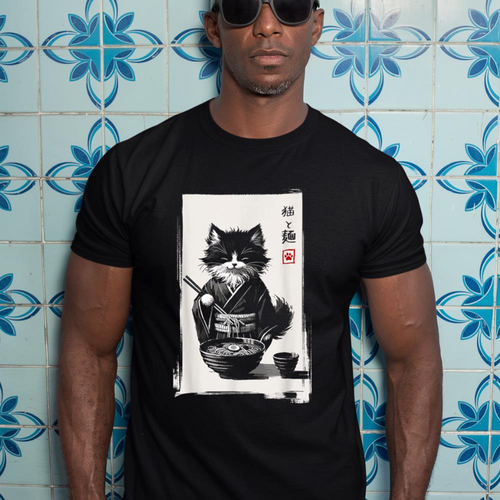 Retro Japanese Kawaii Anime Ramen Men Kids Women Cat Ramen T-Shirt